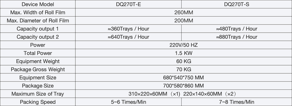 เครื่องซีลสูญญากาศอัตโนมัติขนาดเล็กแบบตั้งโต๊ะ รุ่น DQ270T-E สำหรับซีลถุงบรรจุภัณฑ์เคมีภัณฑ์ เครื่องดื่ม และซองต่างๆ