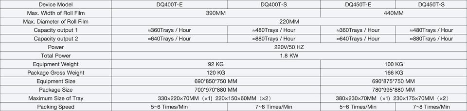 เครื่องซีลถาดแบบกึ่งอัตโนมัติไฟฟ้าความเร็วสูง รุ่น DQ450T สำหรับบรรจุภัณฑ์ปรับสภาพบรรยากาศ (MAP) สำหรับเนื้อหมู เนื้อวัว และปลาสด