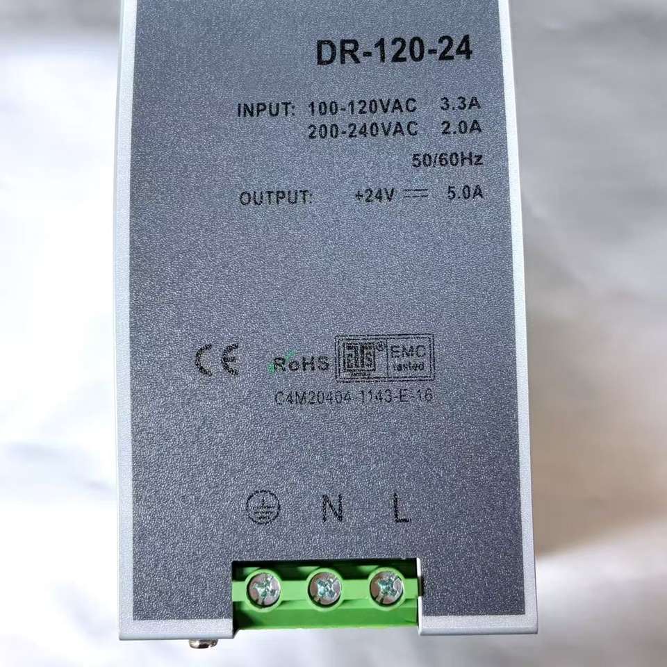 DR-120-24 แหล่งจ่ายไฟราง DIN 120W 24V 5A แหล่งจ่ายไฟแบบสวิตช์อุตสาหกรรมพร้อมอินพุตอเนกประสงค์