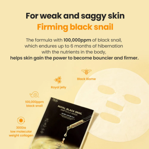 ครีมบำรุงผิวหน้าและผิวกายสำหรับ D r.g Royal Black Snail Ampoule Mask K-Beauty