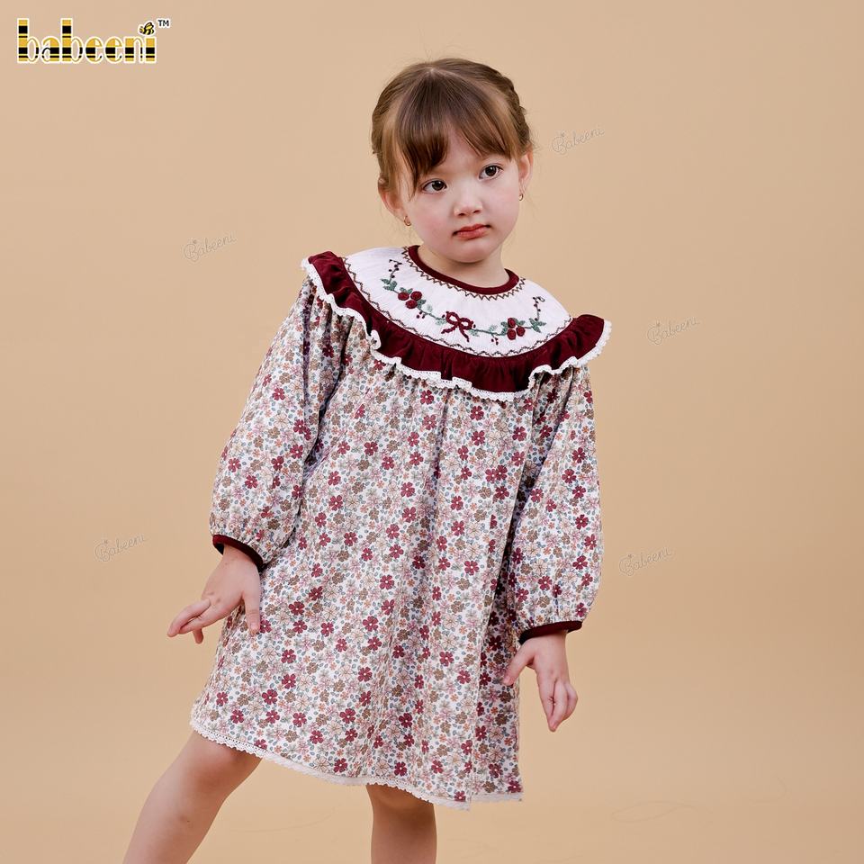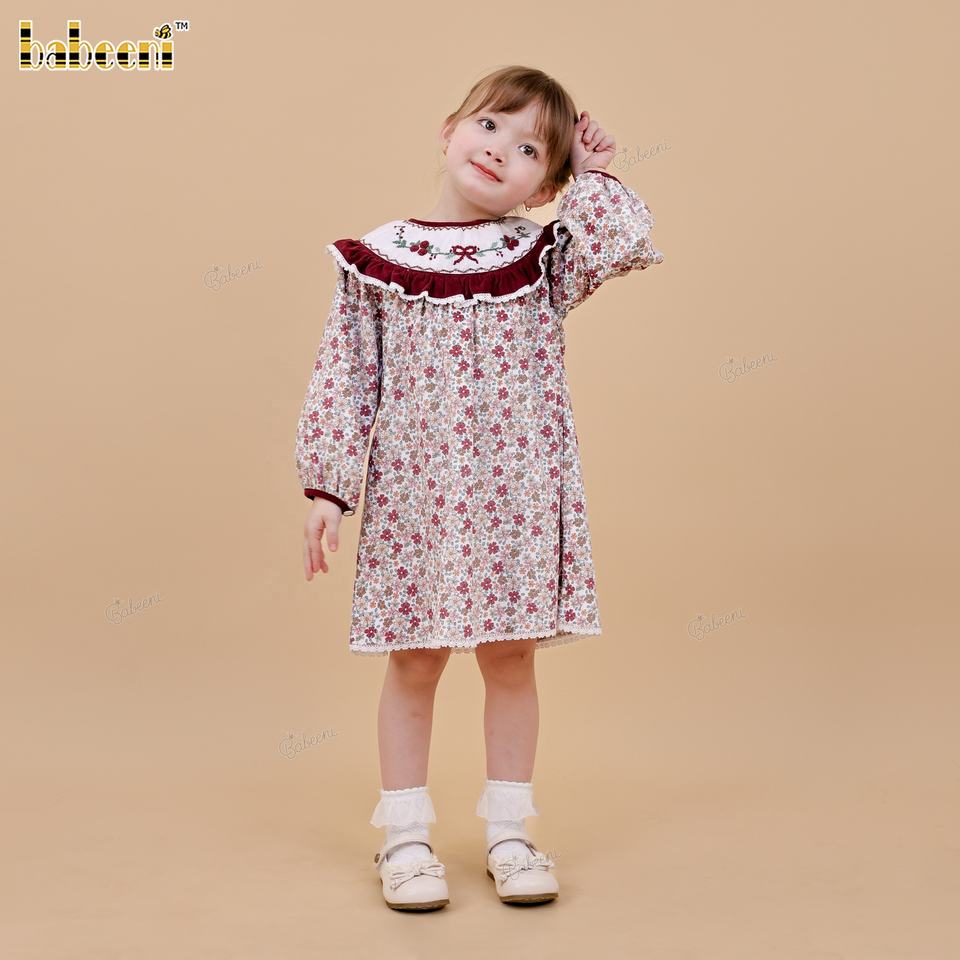 ชุดเดรสเด็ก DR4507 ลายดอกไม้ฤดูใบไม้ร่วง ปักมือ ผ้าฝ้าย 100% สำหรับเด็ก ODM ขายส่งโดย Babeeni