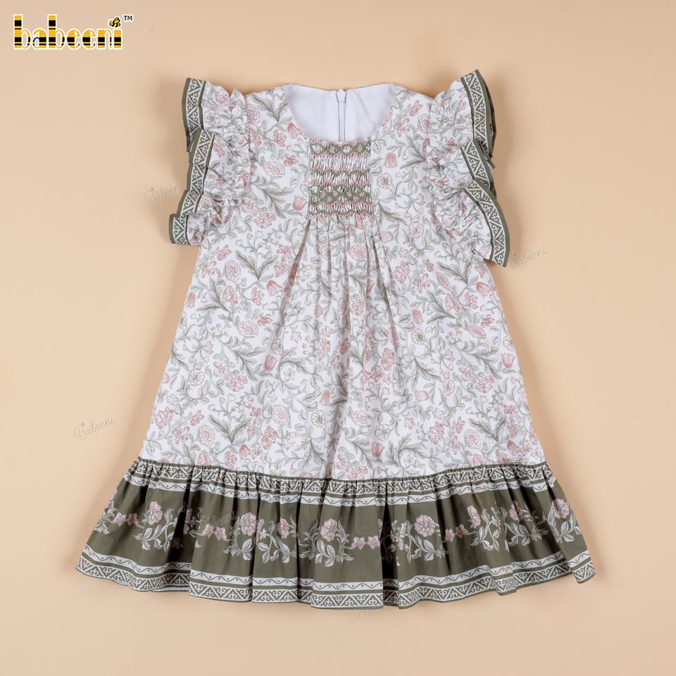 DR4529 – ชุดเดรสเด็กผู้หญิงลายดอกไม้แต่งขอบตัดสี ชุดเดรสขายส่งสำหรับเด็กทารกหญิง