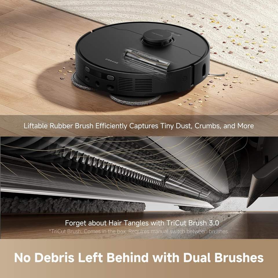 หุ่นยนต์ดูดฝุ่นและถูพื้น DREAME L40s Ultra AE, แรงดูด 19,000Pa, กล่องเก็บฝุ่นแบบเทเองอัตโนมัติ, หัวถูพื้นแบบยืดหยุ่น & 167 ระบบทำความสะอาดตัวเอง