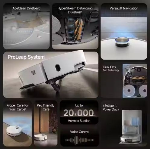 เครื่องดูดฝุ่น DREAME X50 Ultra แบบติดตามพื้นผิว ดูดฝุ่นแรงสูง แปรงทำความสะอาดตัวเอง ชาร์จเร็ว ทำความสะอาดแบบเปียกอัตโนมัติ