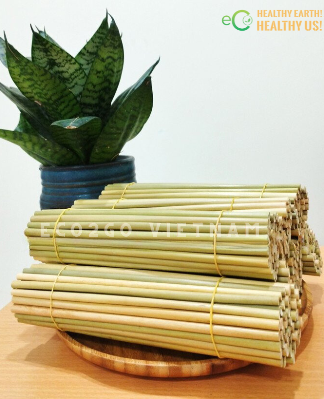 หลอดกกหญ้าแห้งแบบใช้แล้วทิ้งหลอดกกสำหรับดื่มเครื่องดื่มย่อยสลายได้ทางชีวภาพหลอดหญ้าแห้งเป็นมิตรต่อสิ่งแวดล้อม CO2GO เวียดนาม