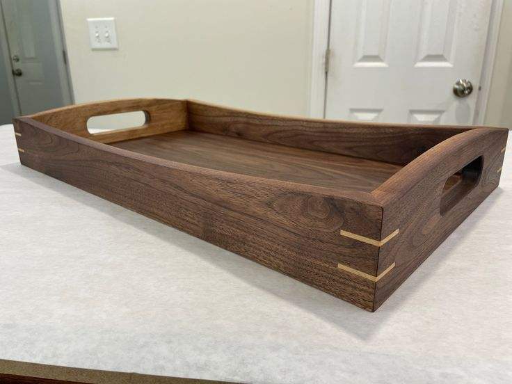 ถาดเสิร์ฟไม้พร้อมด้ามจับถาดใส่กาแฟสีเรียบง่ายสำหรับห้องนั่งเล่นถาดไม้ตกแต่ง