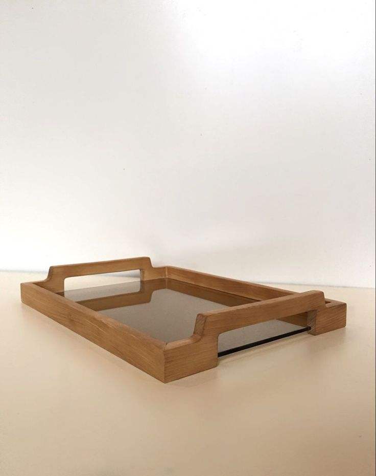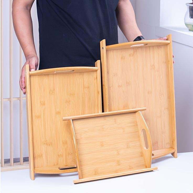 ถาดเสิร์ฟไม้พร้อมด้ามจับถาดใส่กาแฟสีเรียบง่ายสำหรับห้องนั่งเล่นถาดไม้ตกแต่ง
