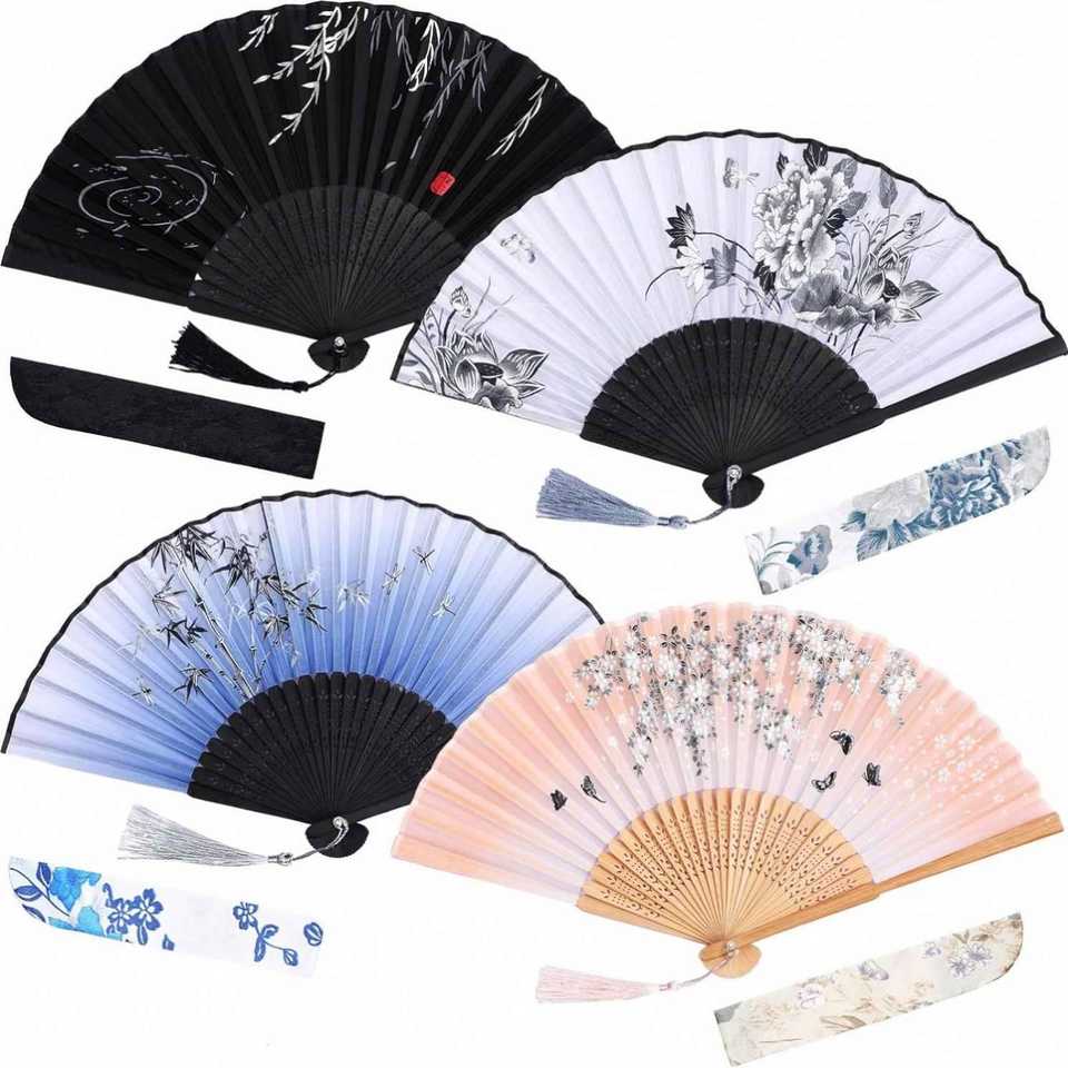 DS Design Hand-Held Bamboo Craft Folding Fan Carved with Silk Fabric Folk Art Style for Parties Weddings Gifts Wall Decoration