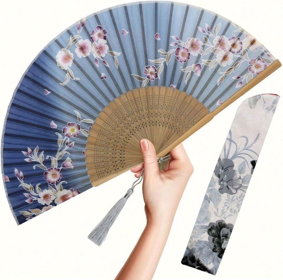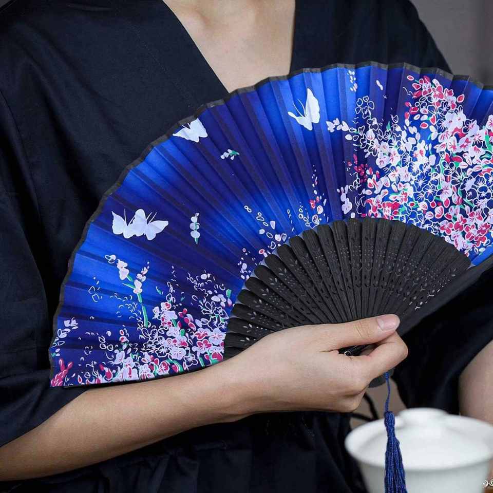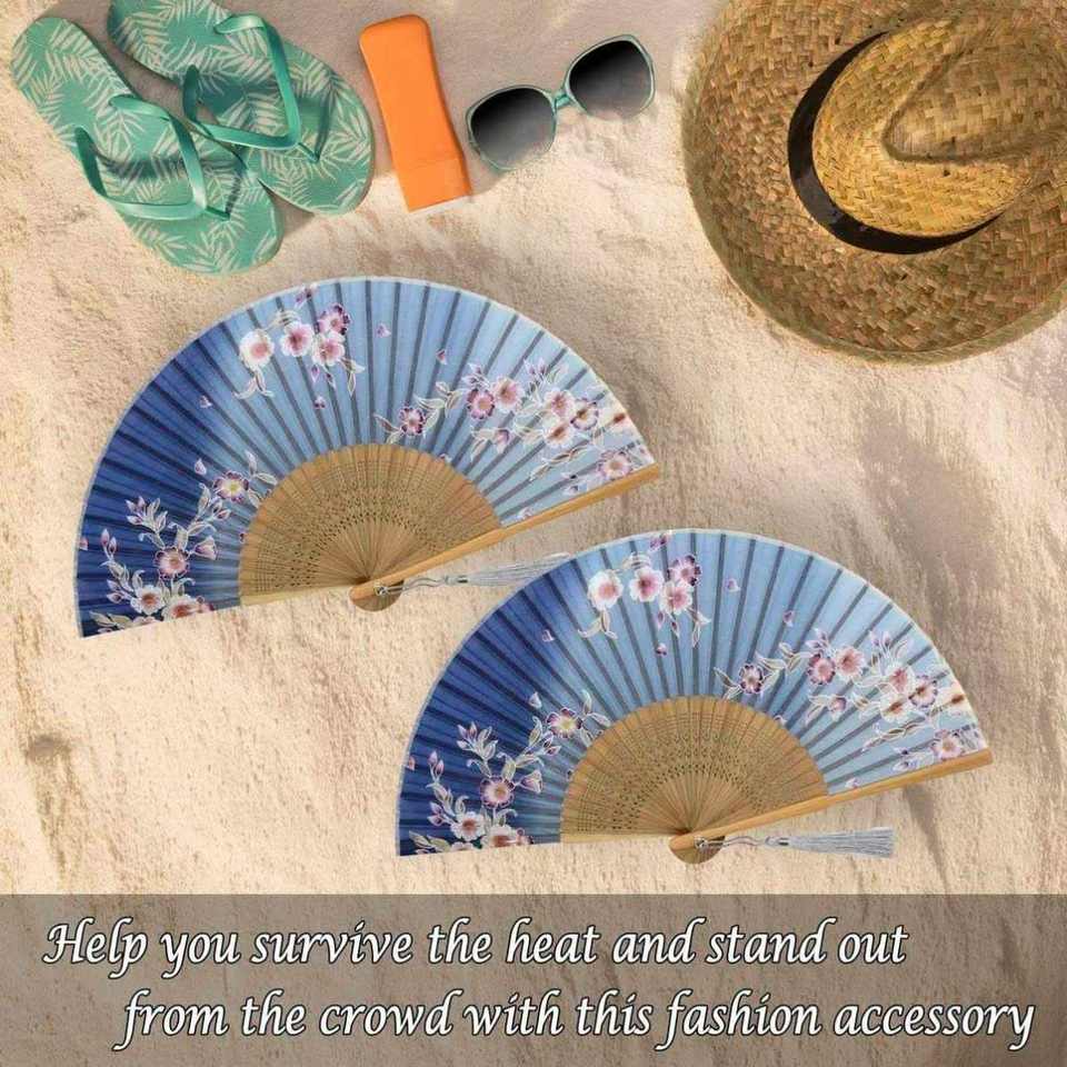 พัดไม้ไผ่พับได้ลายแกะสลักผ้าไหมสไตล์งานฝีมือพื้นบ้าน สำหรับงานปาร์ตี้ งานแต่งงาน ของขวัญ ตกแต่งผนัง