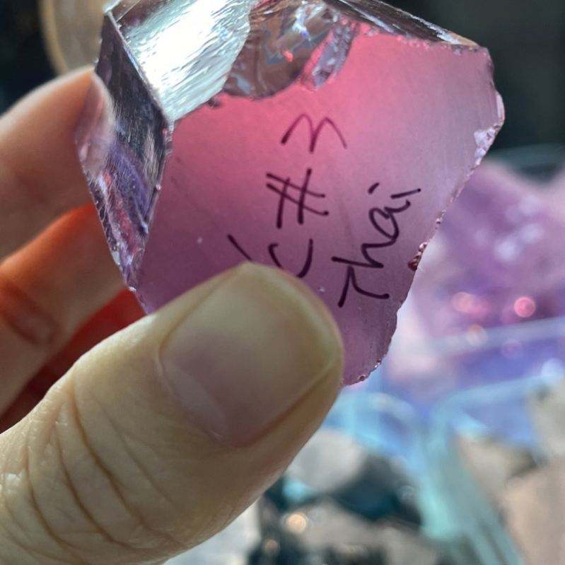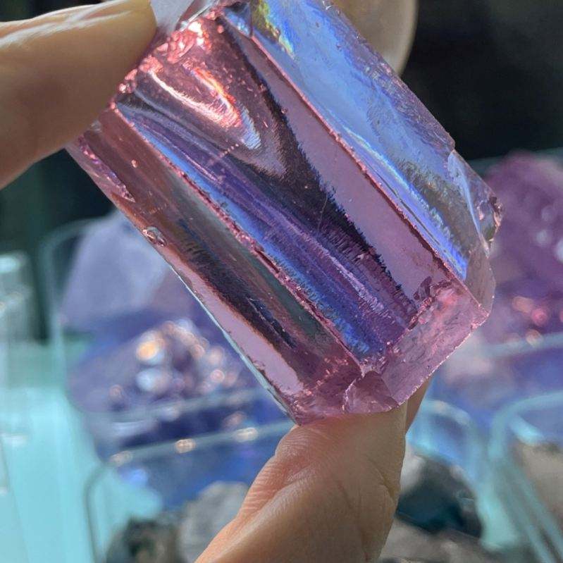 DS อัญมณีหินขรุขระปรับผิวหน้าเป็นลูกบาศก์สีชมพูม่วงรูปลูกบาศก์สีที่มีคุณภาพสูงช้าง #3
