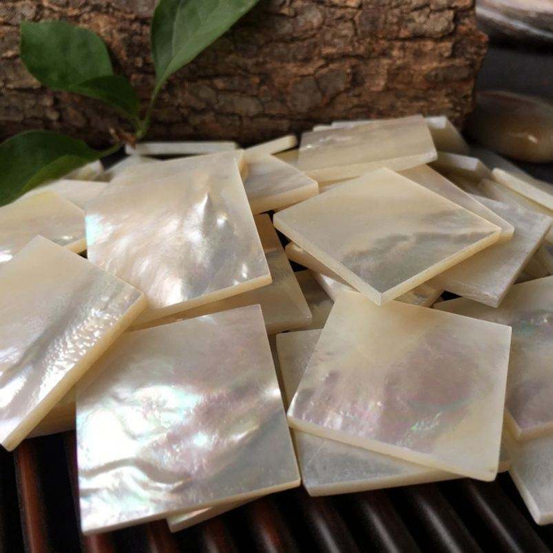 พลอย DS พลอยหินเปลือกหอยสีขาวตัดทรงสี่เหลี่ยม