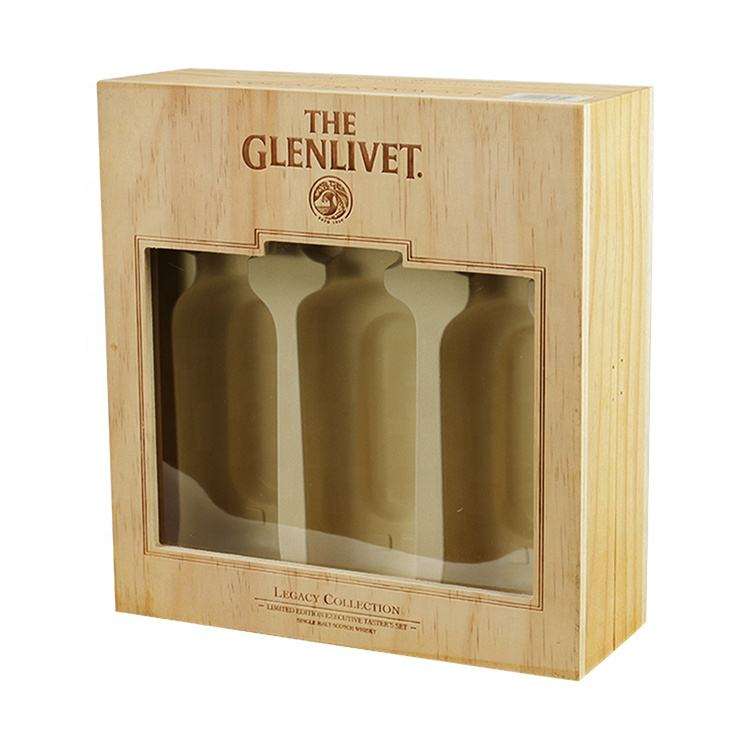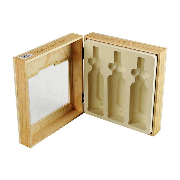 กล่องของขวัญไวน์ไม้ 3 ขวด ยี่ห้อ DS Handmade พร้อมหน้าต่าง ผิวเคลือบเงา รีไซเคิลได้ รูปทรงสี่เหลี่ยมผืนผ้า ปรับแต่งได้