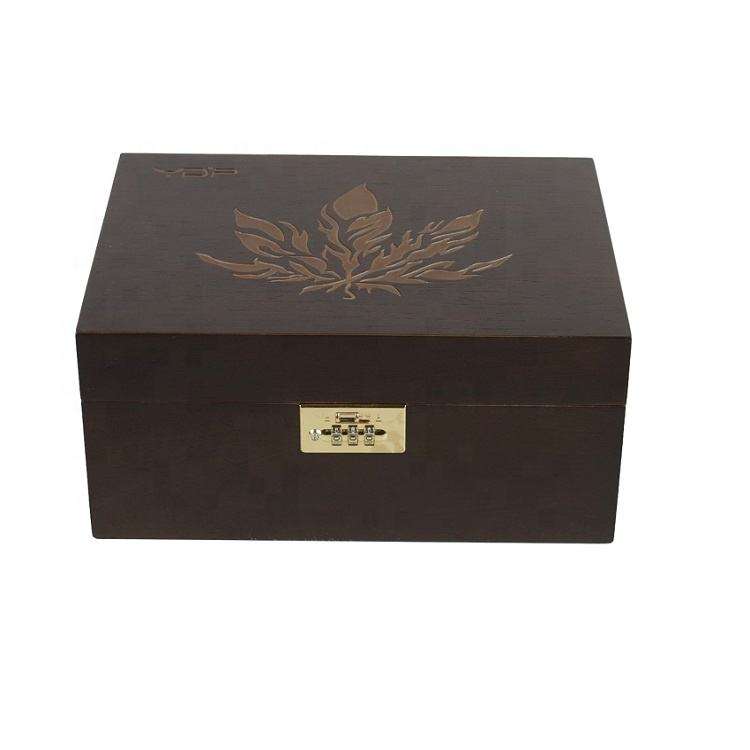 กล่องเก็บซิการ์ไม้ทำมือเคลือบเงาสุดหรู พร้อมรหัสล็อคและสลักโลโก้ด้วยเลเซอร์