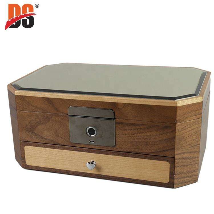 กล่องกระจกโมเสคไม้วอลนัททรงสี่เหลี่ยมหรูหรา DS พร้อมช่องเก็บของหลายช่อง กล่องเก็บเครื่องประดับไม้