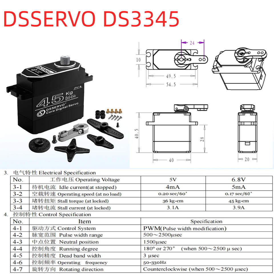รถหุ่นยนต์ดิจิตอลกันน้ำ DS3345 แบบโลหะทั้งหมด พร้อมแขนกลสำหรับปีนป่าย