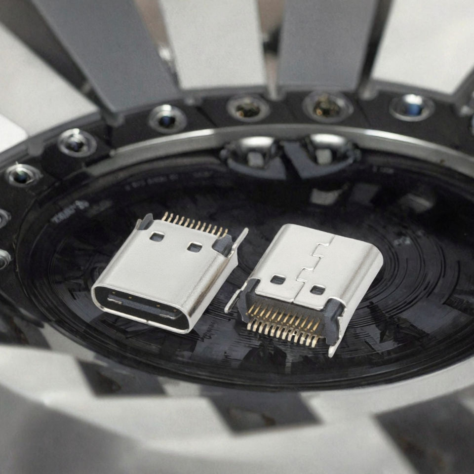 ขั้วต่อ USB รุ่น DSC-0146 แบบ 24 พิน พร้อมที่ยึดแบบ Splint รองรับซ็อกเก็ตแนวตั้งขนาด 0.8/1.0 ชนิด Type-C วัสดุ LCP รองรับกระแสไฟ 5A