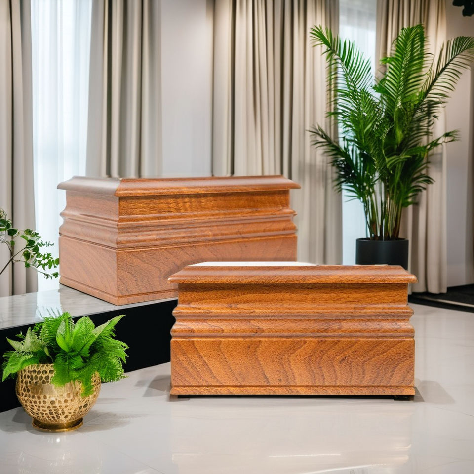 โลงศพไม้หรูหรา รุ่น Zion Urn DSU101 จาก DSP Manufacturing ผลิตจากไม้คิงวูด ขัดเงาอย่างดี เป็นมิตรต่อสิ่งแวดล้อม พร้อมหูจับไม้คิงวูด รับประกัน 3 ปี