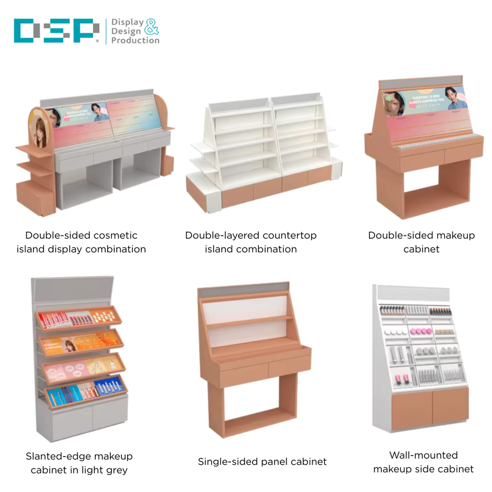 เคาน์เตอร์กลางร้านเครื่องสำอางเคลือบสีเงาแบบอบแห้งจากโรงงาน DSP เวียดนาม สำหรับร้านเครื่องสำอางในห้างสรรพสินค้า