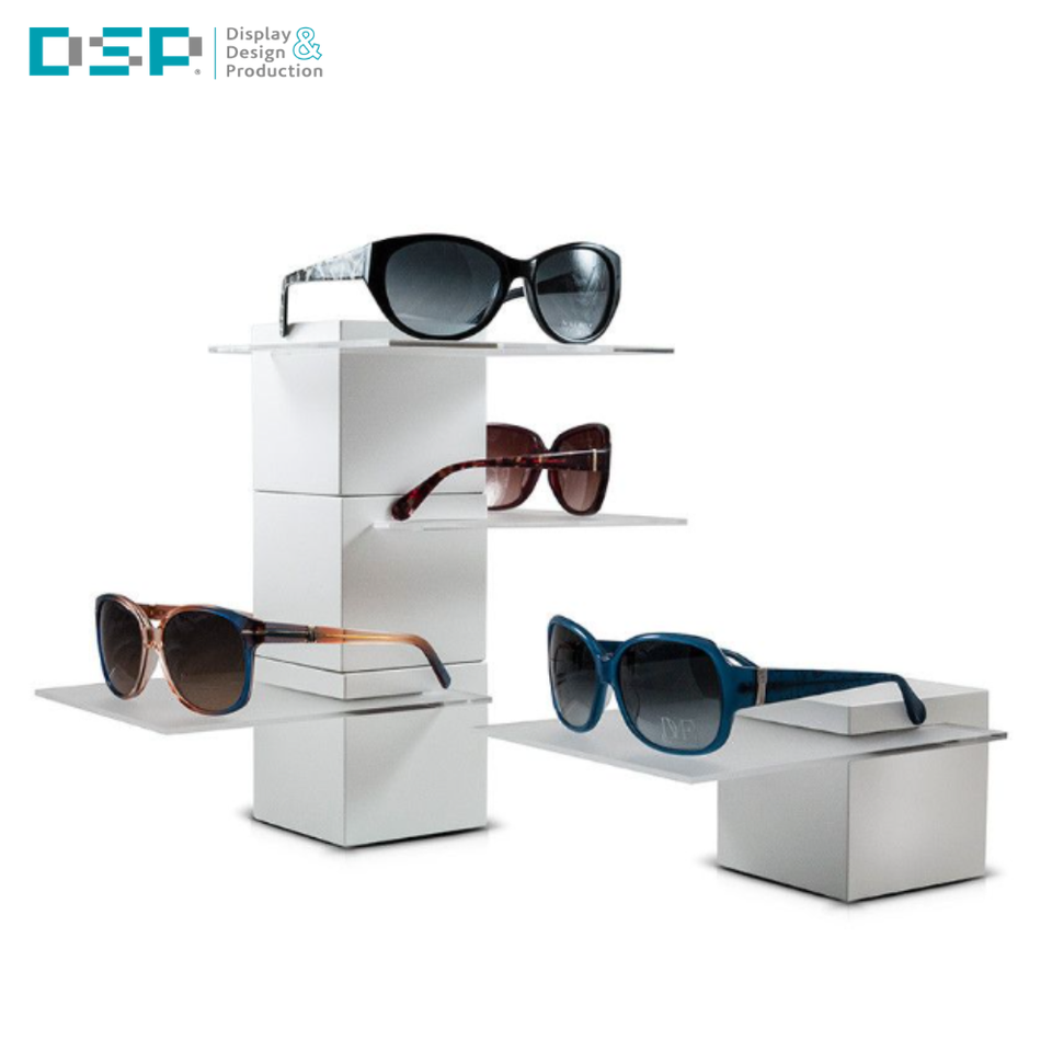 ชั้นวางแว่นตาแบบโมดูลาร์หลายช่องสำหรับขายปลีกจากโรงงาน DSP เวียดนาม ชั้นวางแว่นกันแดดอะคริลิคแบบหมุนได้ 3 ชั้น