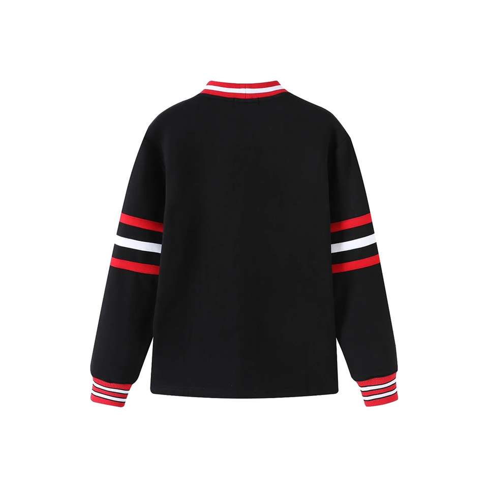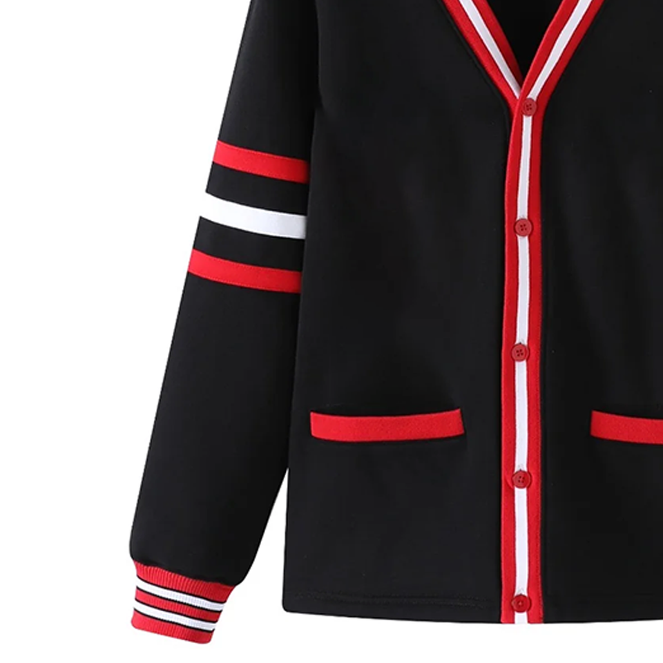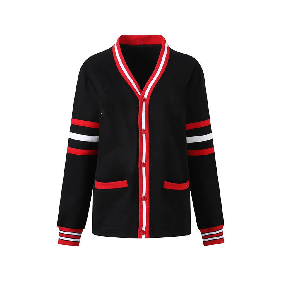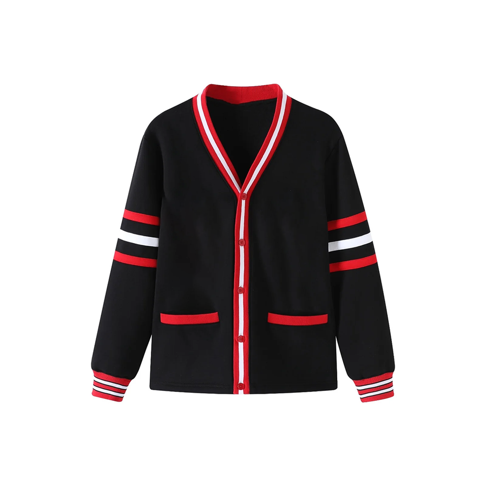 เสื้อคาร์ดิแกนไหมพรมขนแกะ/แคชเมียร์ ยูนิเซ็กซ์ คอวี แบรนด์ DST Black Chenille แต่งขอบยางยืดพร้อมลายปักตัวอักษรกรีก สวมใส่สบาย