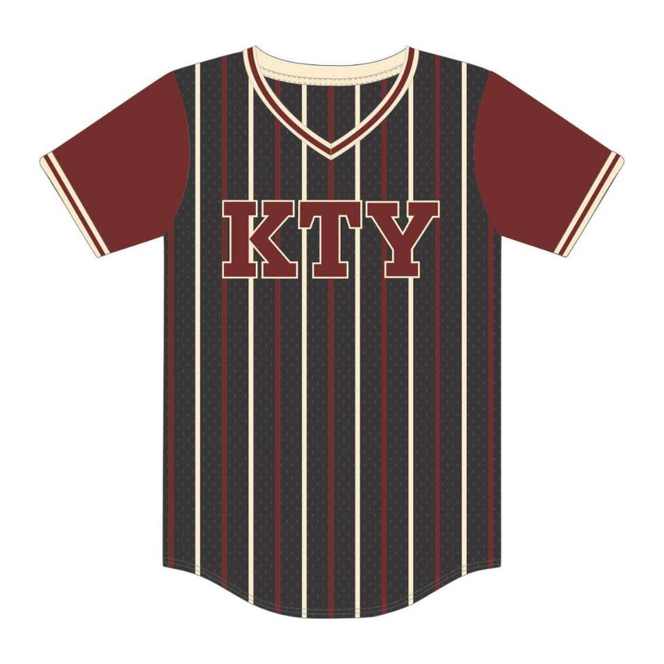 DST Black Pinstripe Pullover Baseball Jersey 100% Polyester Mesh Delta Sorority V Neck T Shirt Maroon Embroidered Applique Logo