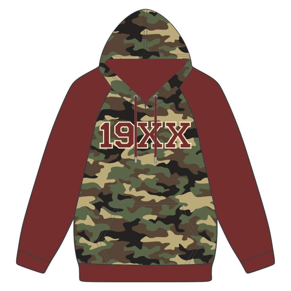 DST Delta Camo เสื้อมีฮู้ดแขนเสื้อแบบแร็กแลนผ้าคอตตอนผสมกับเสื้อผ้าสมาคมสตรีชาวกรีกในปีที่ก่อตั้งปีที่9
