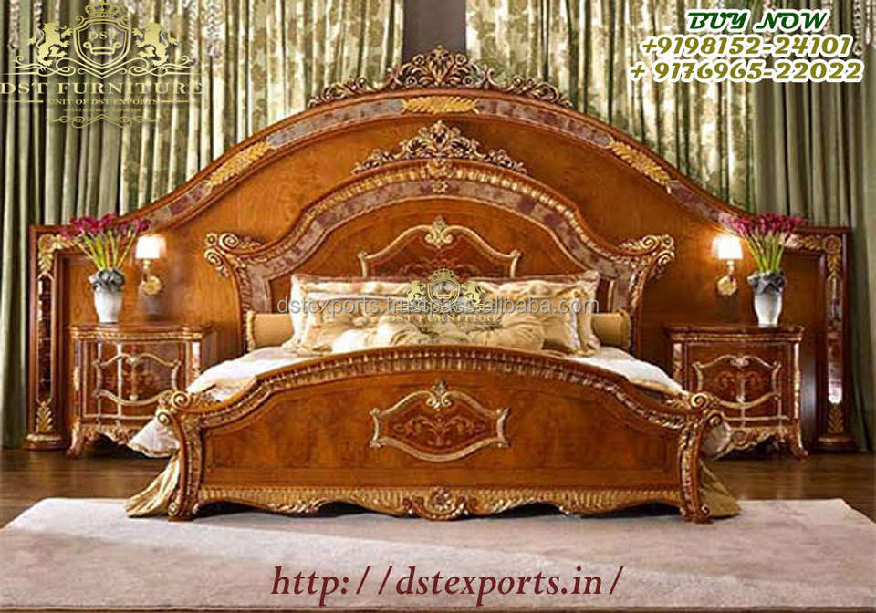 ชุดห้องนอน DST EXPORTS สไตล์คลาสสิก โครงไม้เนื้อแข็ง พับได้ ดีไซน์หรูหรา แกะสลักสีทอง ลดราคาพิเศษสำหรับตลาดอเมริกา