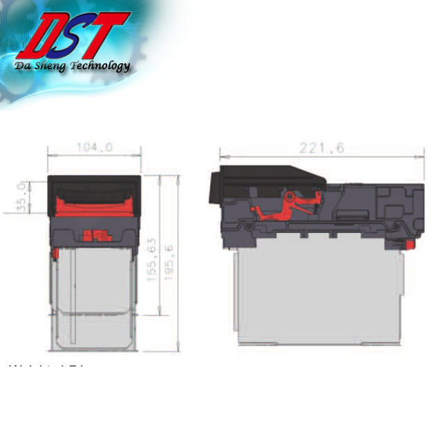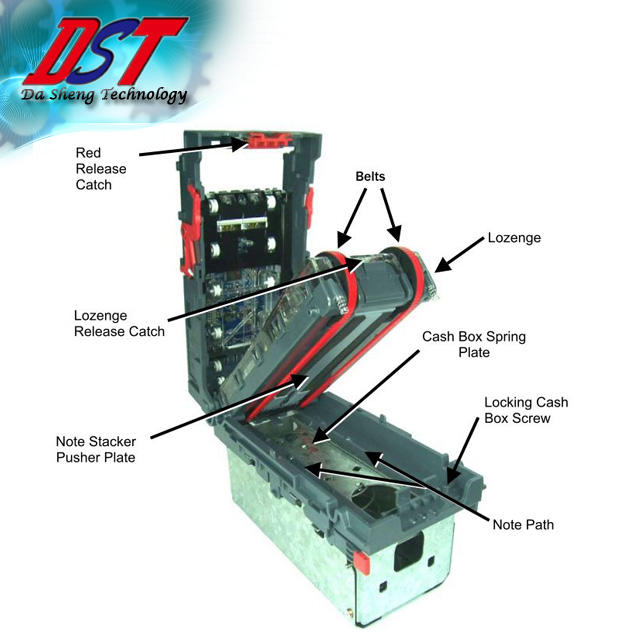 เครื่องรับธนบัตร DST NV9 สำหรับตู้จำหน่ายสินค้าอัตโนมัติ - ได้รับการรับรองมาตรฐาน CE/RoHS 12V รับประกัน 1 ปี ความจุธนบัตร 300/600/1000 ใบ