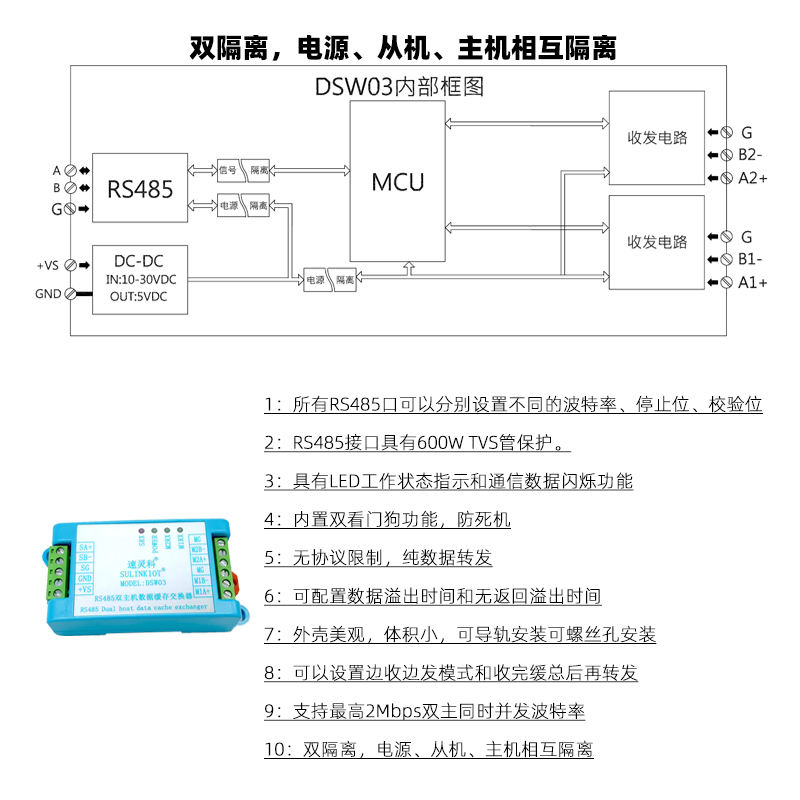 ฮับ RS485แบบแยกสองพอร์ตแบบ DSW03-สวิตช์แบบ multi-Slave สองตัว D792จีน
