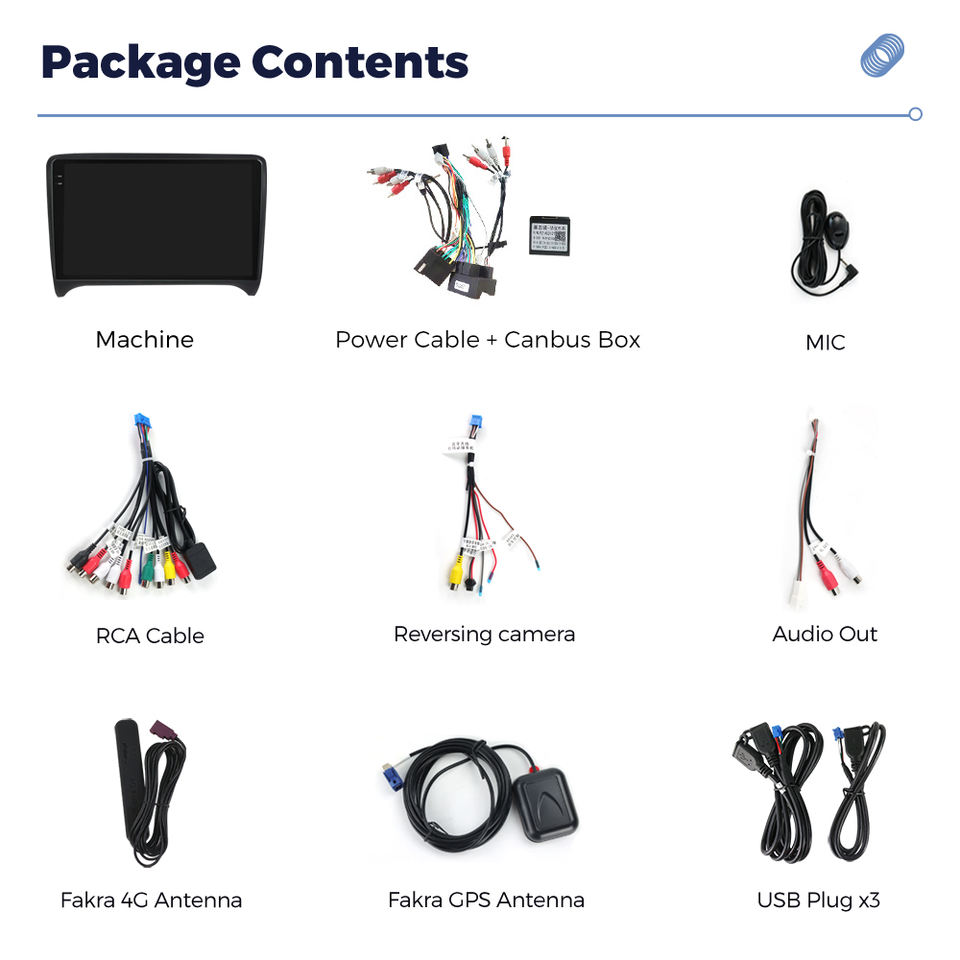 ฟังก์ชัน:GPS, สเตอริโอ, TPMS, รีโมทคอนโทรล, เครื่องขยายเสียง, OBD2, DSP, คาร์เพลย์, DVB +, Mirror Link, Android Auto, ไมโครโฟนในตัว, หน้าจอแยก, File Manager, ควบคุมพวงมาลัยรถยนต์, ลำโพงในตัว