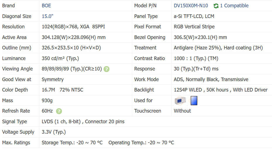 อินเทอร์เฟซแผงควบคุม:LVDS (1 ช่อง, 8 บิต), ขั้วต่อ 20 พิน
