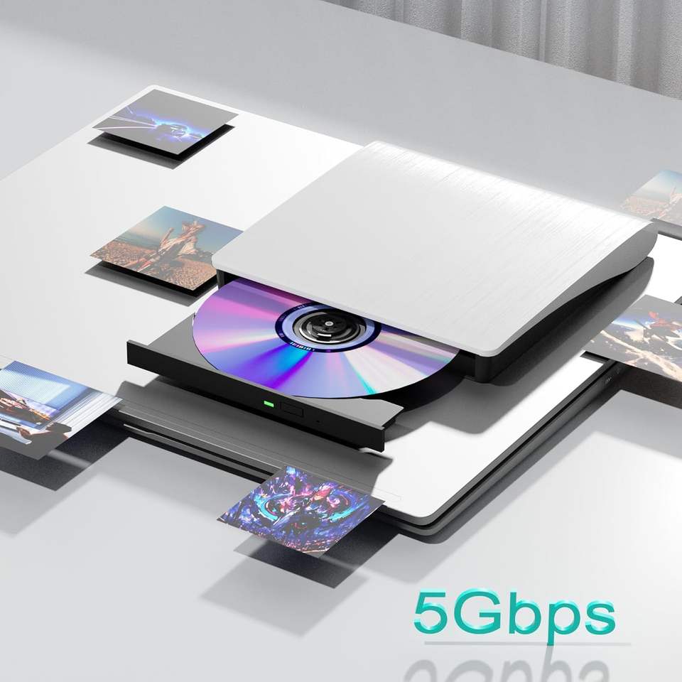 CD-ROM ไดรฟ์ภายนอก DVD พร้อม USB 3.0สำหรับแล็ปท็อปเข้ากันได้กับ Windows 11/10/7/8 /xp Mac MacBook