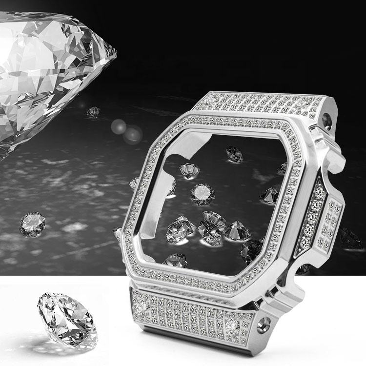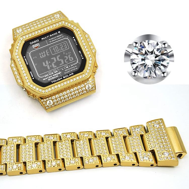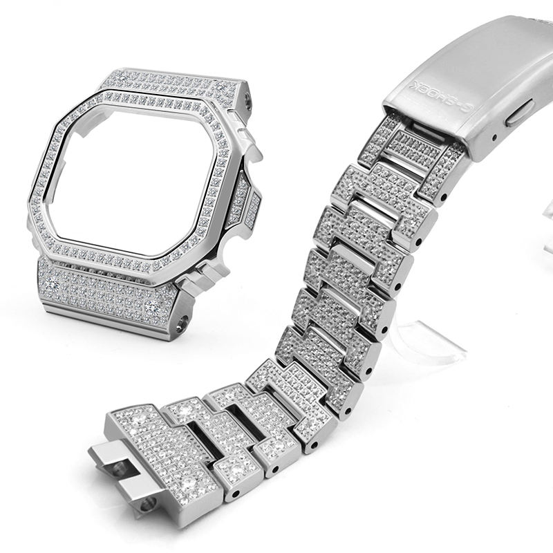 ชุดดัดแปลง DW-5600สายนาฬิกาข้อมือสแตนเลสสตีลประดับด้วยหินน้ำแข็งประกายวิบวับ GW-M5610/GMW-B5000/GM-5600