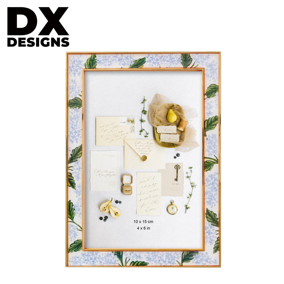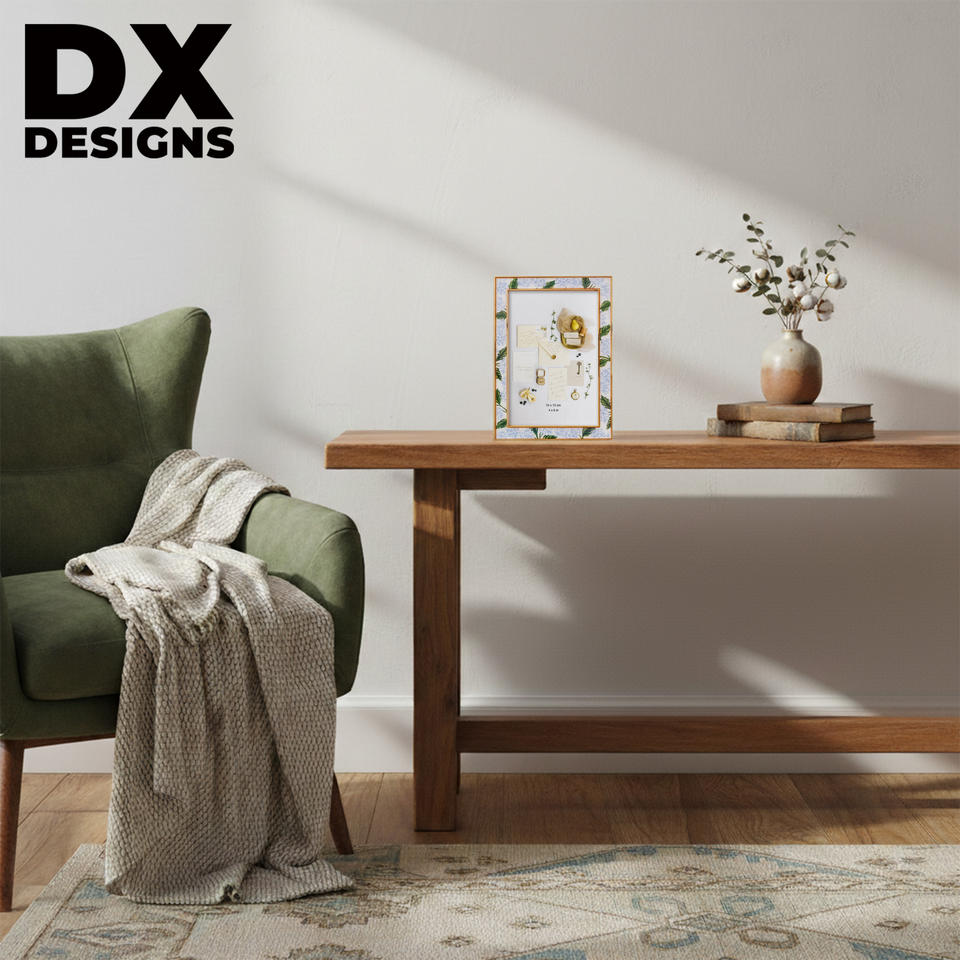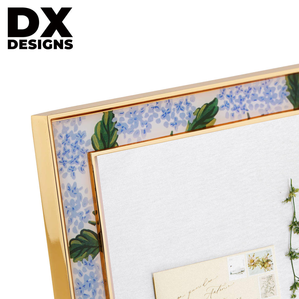 กรอบรูปพลาสติกหรูหราสั่งทำ DX Designs ขนาด 4x6 5x7 6x8 8x10 นิ้ว ขอบสีทอง พร้อมแผ่นไม้ก๊อก สำหรับตกแต่งบนโต๊ะ