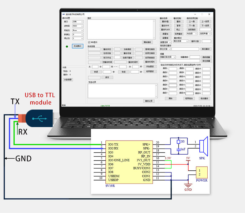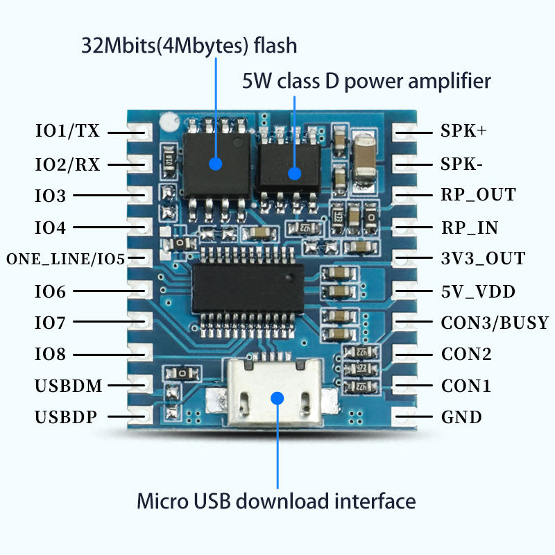 โมดูลเสียง DY-SV19R เครื่องเล่น MP3 ขนาดเล็ก ทริกเกอร์ IO ดาวน์โหลดผ่าน USB โมดูลเสียงแฟลช อัปเกรดจากรุ่น SV17F
