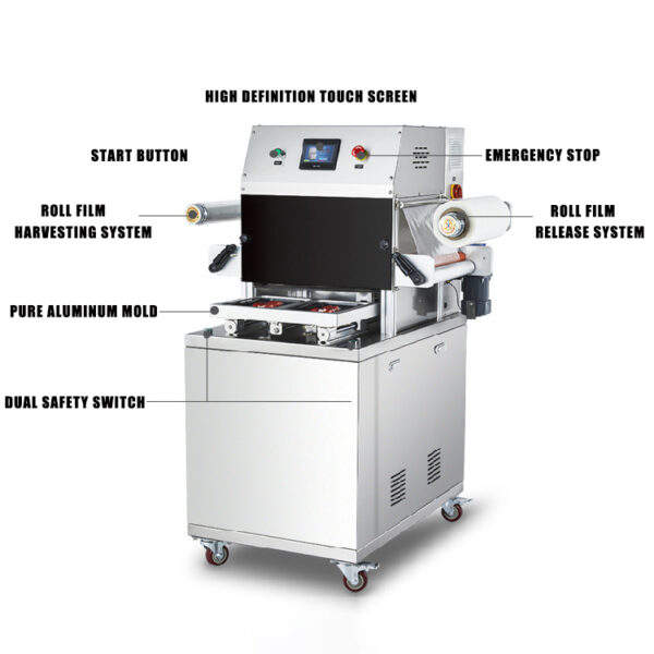 เครื่องบรรจุภัณฑ์สูญญากาศแบบฟิล์มแนวตั้งขนาดเล็กอัตโนมัติ รุ่น DZ-460Z พร้อมลูกปืนสำหรับขวด กระป๋อง และแก้ว