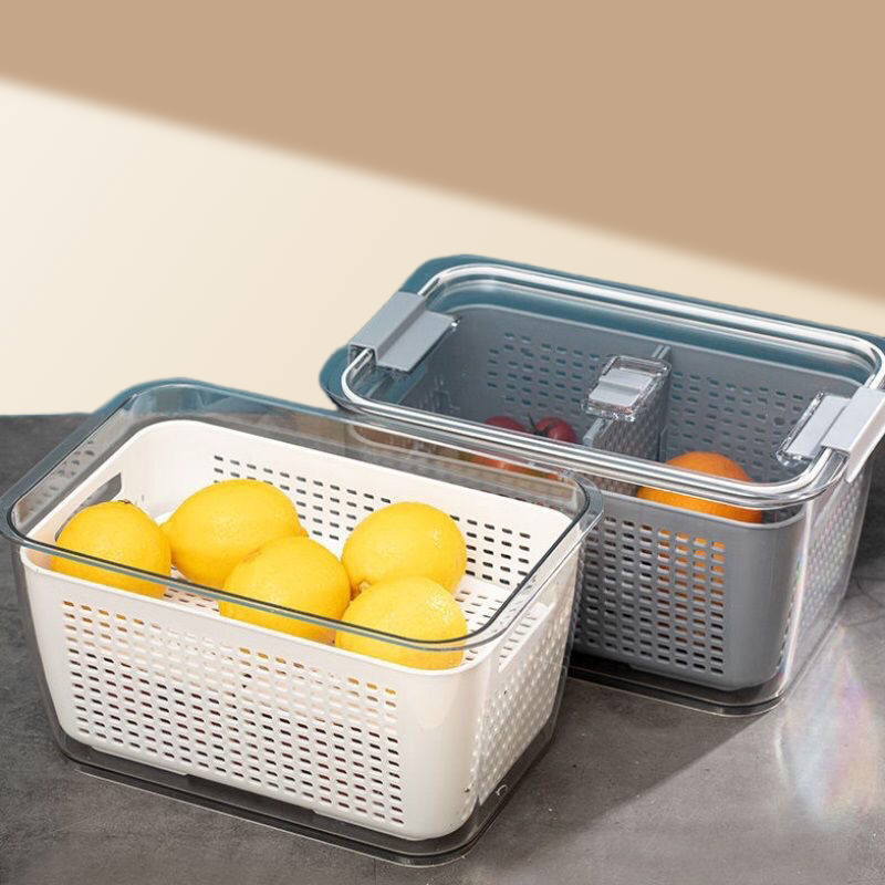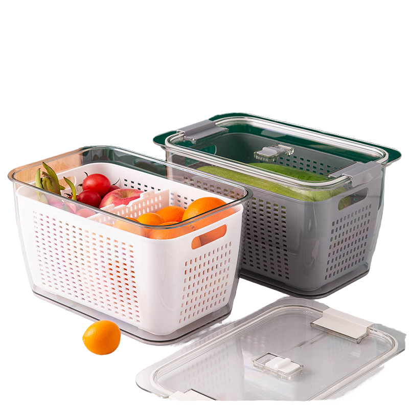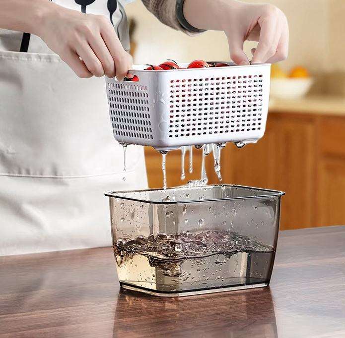 กล่องเก็บของในตู้เย็น DZ Modern PP สำหรับจัดระเบียบผักและผลไม้สด พร้อมตะกร้าระบายน้ำ รุ่น W24-178