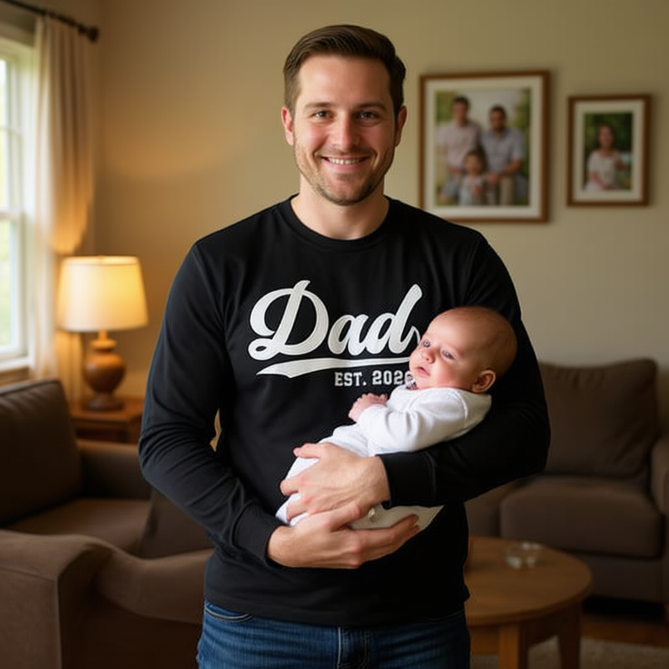 เสื้อยืดแขนยาว Dad Est 2026 สำหรับคุณพ่อคนใหม่ 2026