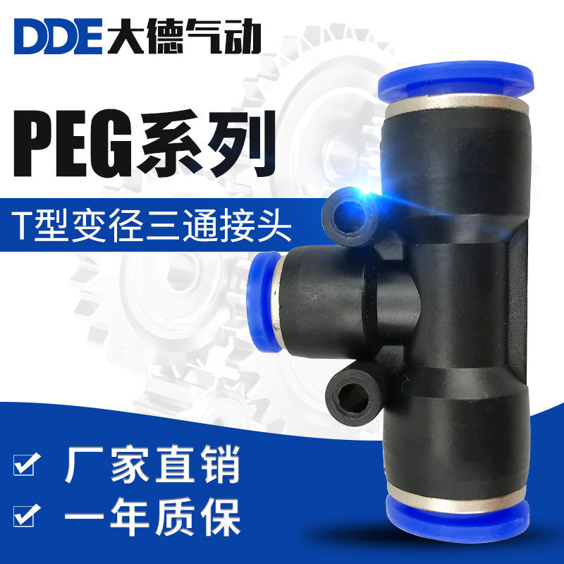 Dade Brass PEG16-12 Quick-Connect Fitting T-Type Tee Reducer Pneumatic Connector for Air Pipes New & Used
