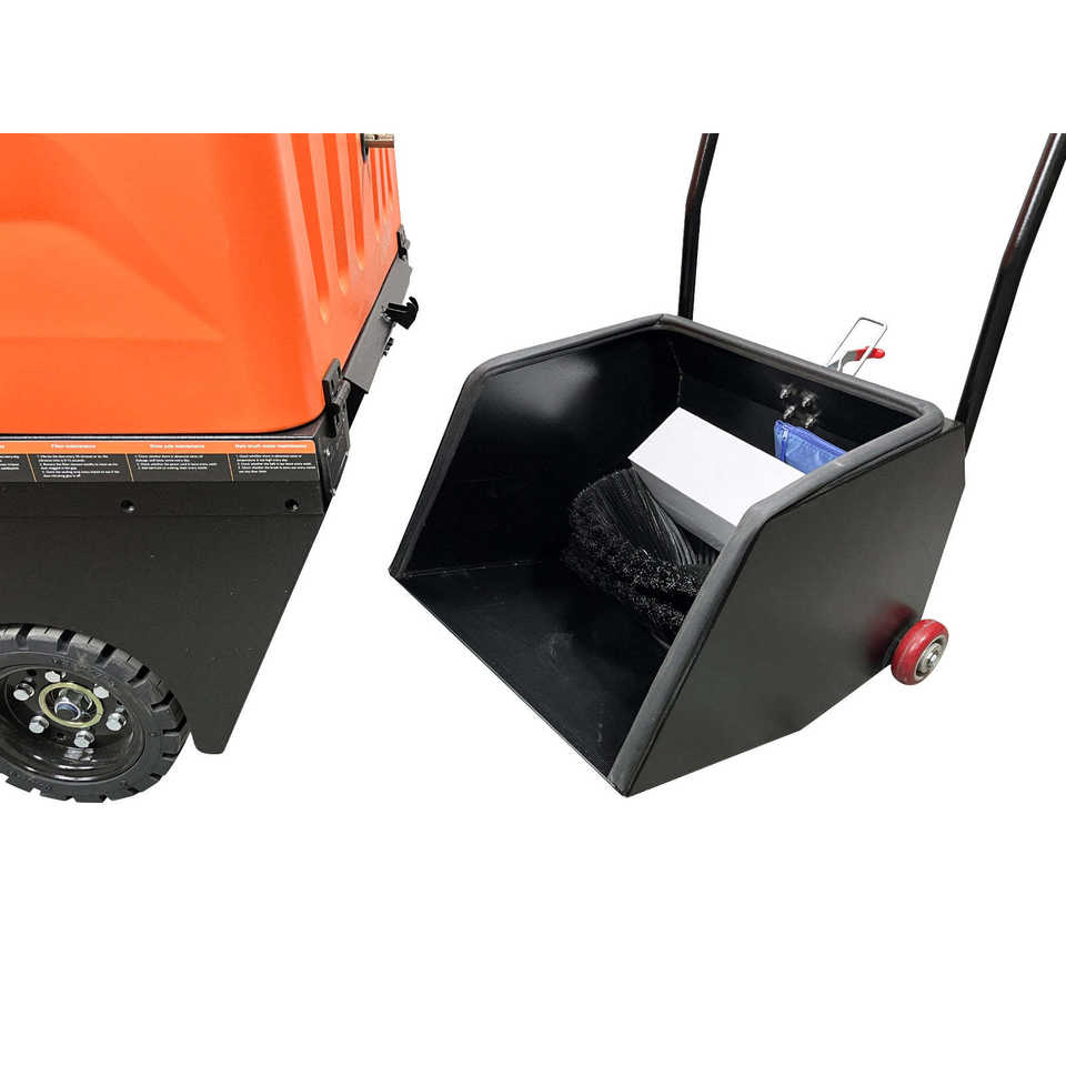 เครื่องกวาดพื้นไฟฟ้าแบบใช้มือหมุนบนถนนพร้อมแปรงปัดมอเตอร์ด้านข้างอุปกรณ์ทำความสะอาดแบตเตอรี่แบบแมนนวล750สิงโต