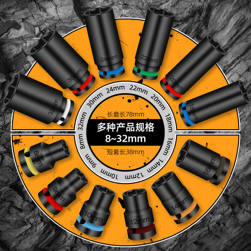 ประแจกระบอกดาเฟย 8-32 มม. หกเหลี่ยม 1/2 นิ้ว ผลิตจากเหล็กอัลลอยด์ Cr-V เกรดอุตสาหกรรม หัวบอล สำหรับเครื่องมือลมและไฟฟ้า