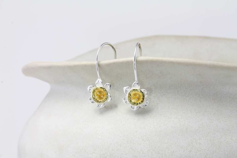 ต่างหูทรงหยดน้ำดอกแดฟโฟดิลหินหลัก