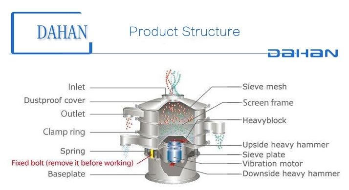 Dahan เครื่องคัดกรองนมผงแบบหมุนหน้าจอสั่นทำจากสเตนเลสพร้อมตัวกรอง