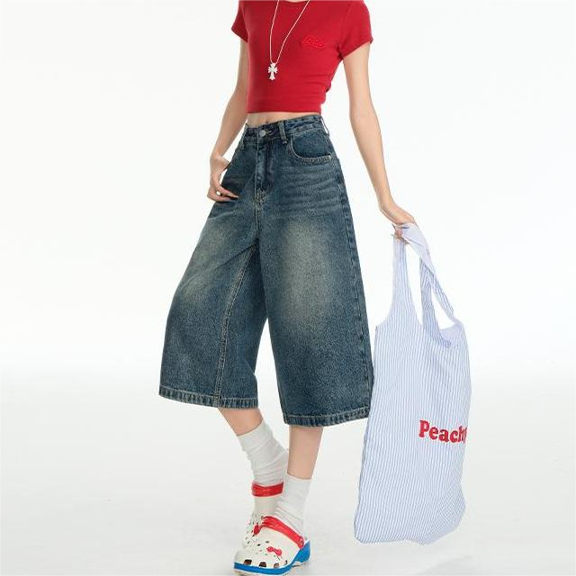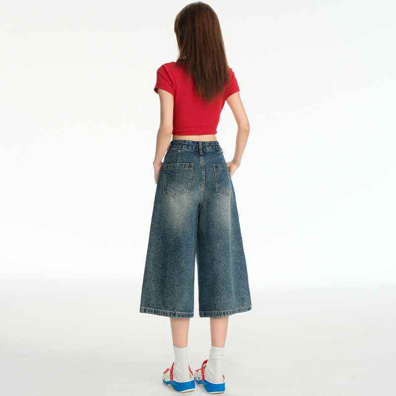 กางเกงยีนส์ทรงตรงเอวสูงสไตล์อเมริกันย้อนยุคสำหรับผู้หญิง ยี่ห้อ Dai Fei ขาบานทรงหลวม ใส่สบาย พิมพ์ลาย เหมาะสำหรับฤดูร้อน ขายส่ง