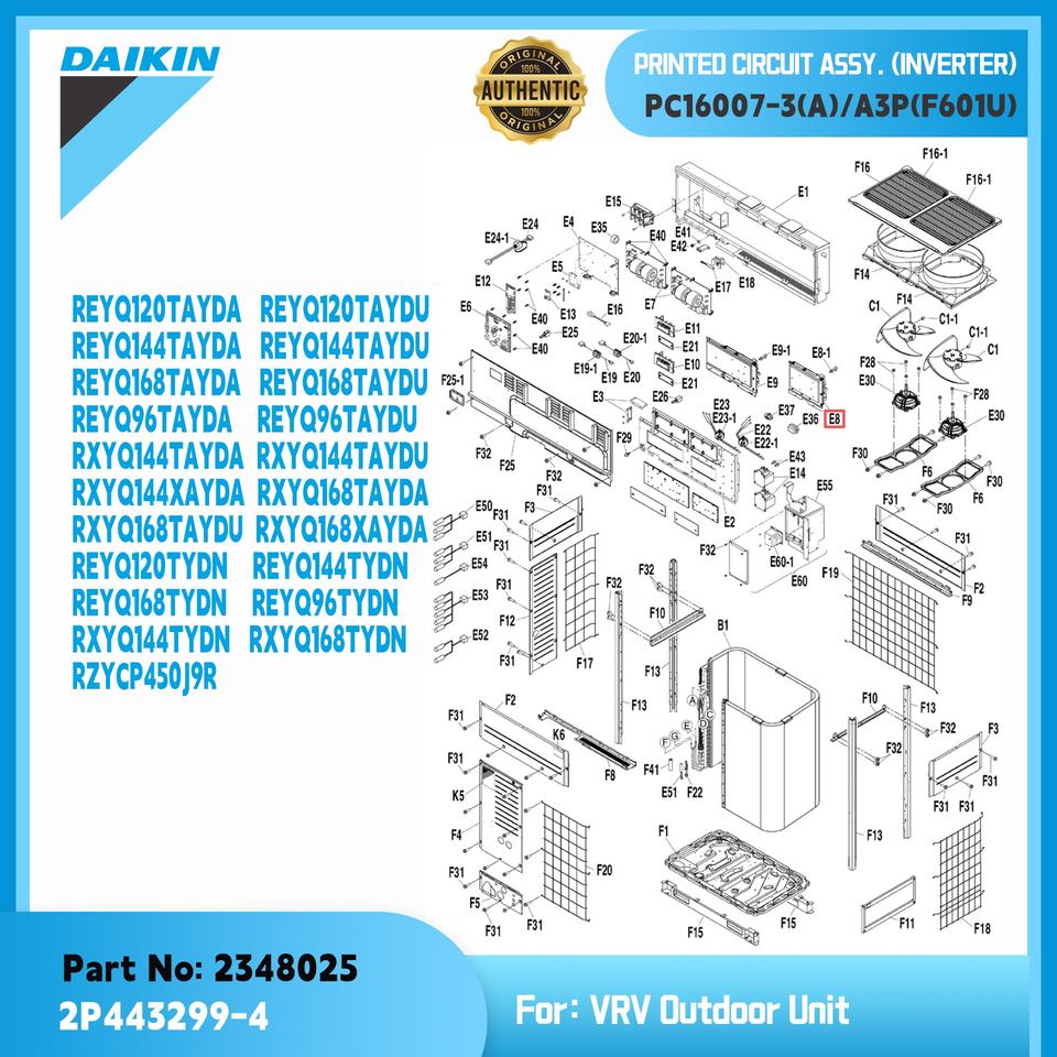 7009579 DAIKIN, วงจรพิมพ์ assy. (อินเวอร์เตอร์) 2348025 PC16007-3(A) กลางแจ้งชิ้นส่วนไดกิ้นของแท้มีสินค้าในสต๊อกและการจัดส่งที่รวดเร็ว