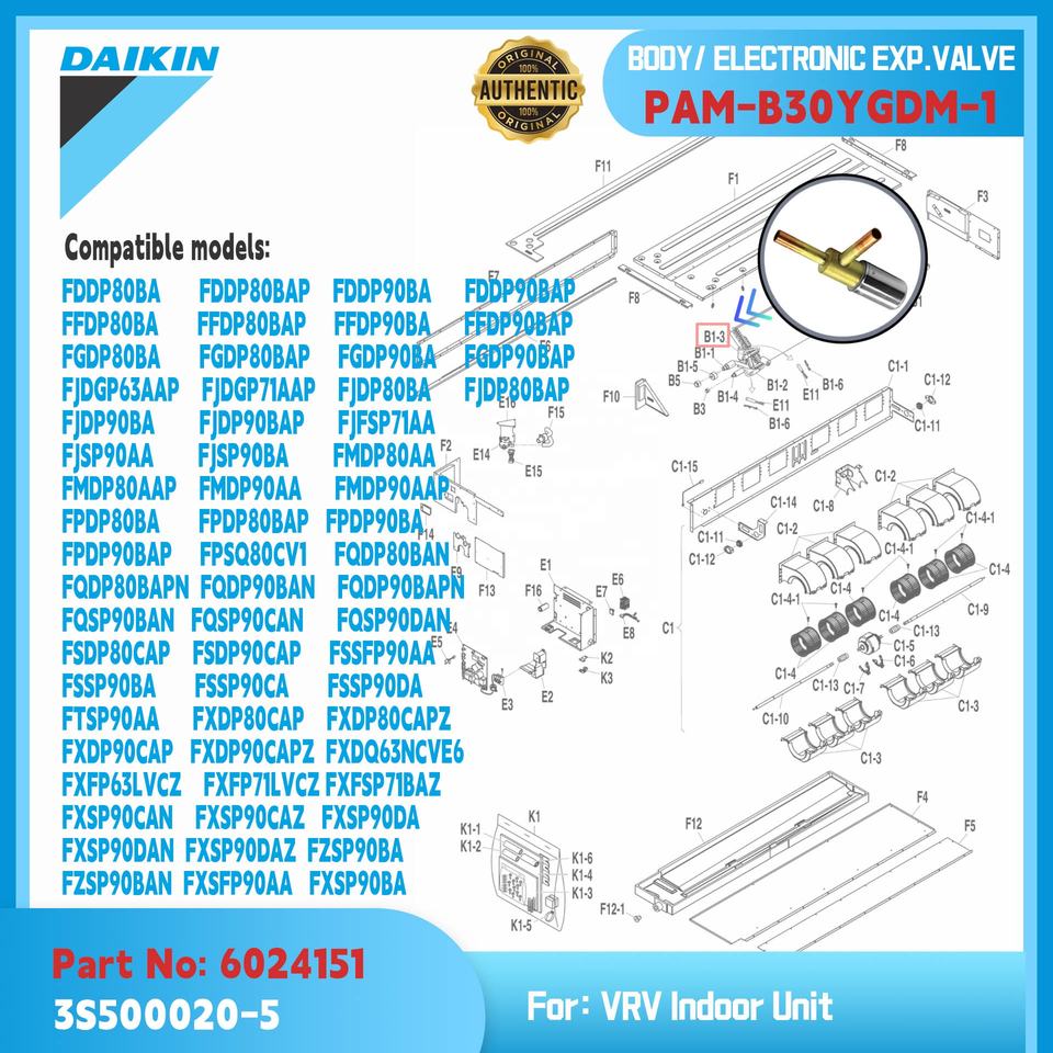 ชื่อผลิตภัณฑ์:Daikin Body ELEC วาล์ว EXP PAM-B30YGDM-1