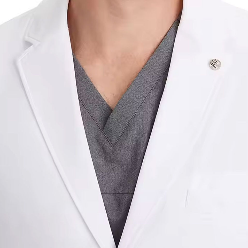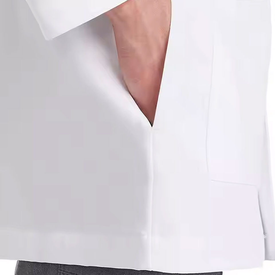 เสื้อกาวน์แพทย์สีขาวน้ำหนักเบาสำหรับผู้ชายไซส์ใหญ่ พร้อมคุณสมบัติตรวจจับเข็ม วัสดุคุณภาพสูง ออกแบบมาเพื่อการใช้งานทางการแพทย์ประจำวัน