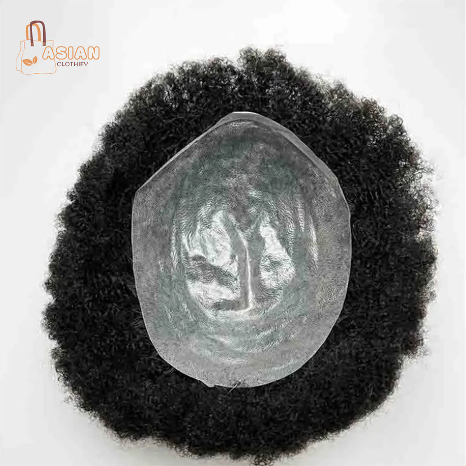 วิกผมผู้ชายสีดำแบบธรรมชาติ ฐานไหม ทนความร้อน ผมตรงสั้น ผมแท้เวอร์จิ้นเรมี่บราซิล แบบผูกด้านข้าง สำหรับใช้ทุกวัน