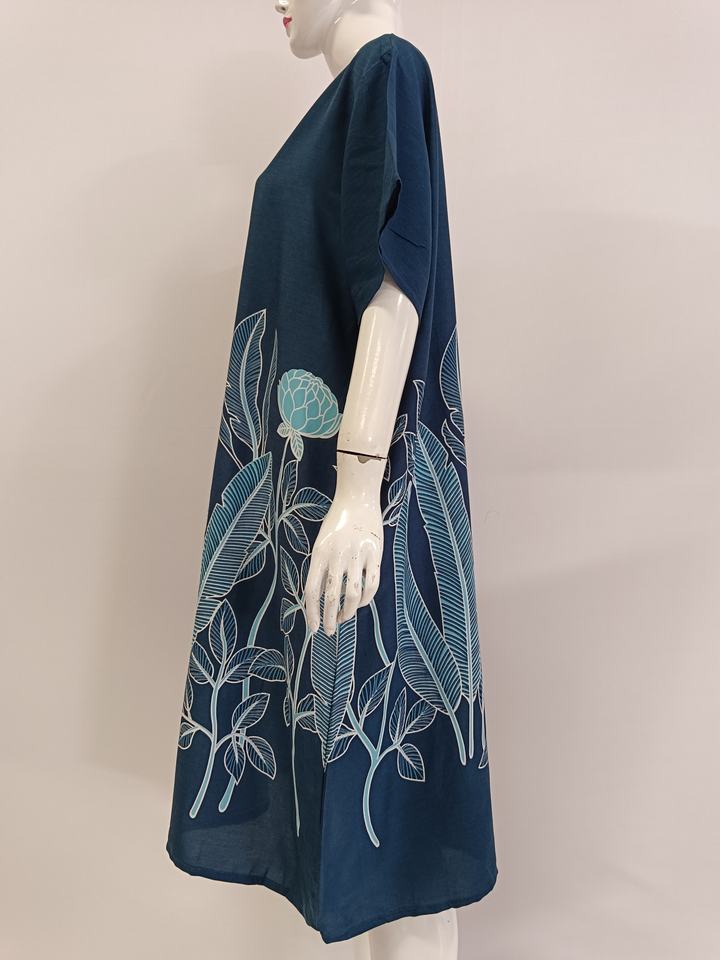 ชุดเดรสสำหรับฤดูร้อนขนาดจัมโบ้ของผู้หญิงชุดนอนแขนสั้นลายดอกไม้ใส่สบายผ้าเรยอนนุ่มสำหรับฤดูร้อน