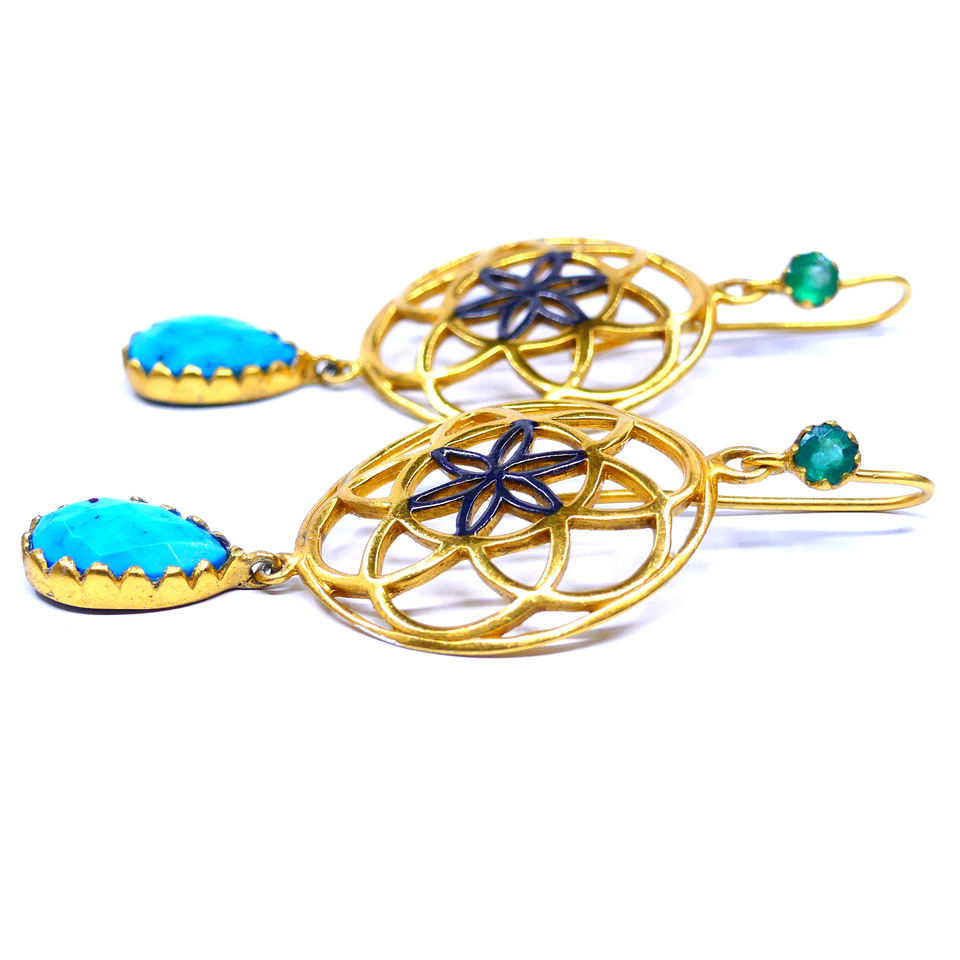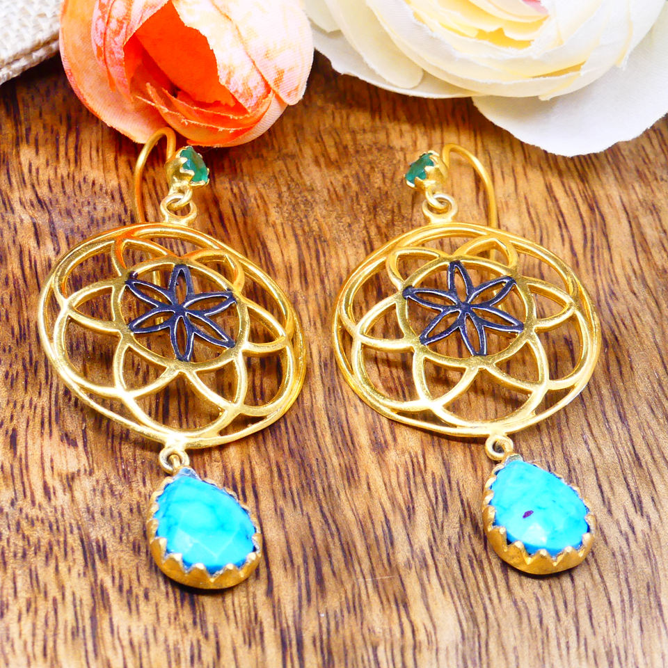 สวมใส่ทุกวัน 925 เงินสเตอร์ลิงทองชุบมรกตพลอยเทอร์ควอยซ์คลาสสิกสุภาพสตรีสวมต่างหู